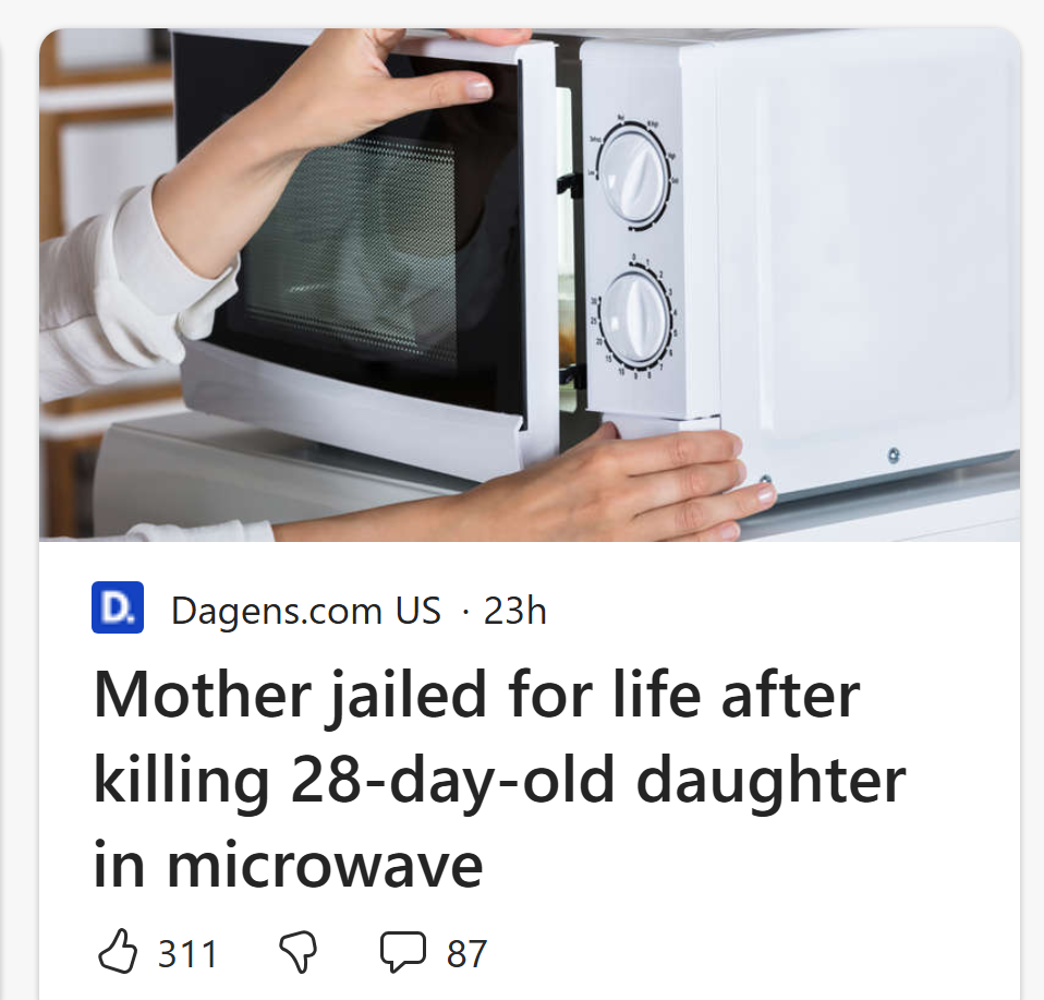 In yet another example of MSN’s antiwhite bias, the story of a black mother who murdered her daughter by placing her in a microwave is accompanied by a stock photo of a White woman with a microwave. Dagens.com, where the story is sourced from, also features this stock photo:
